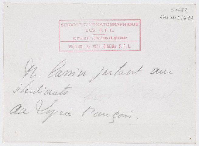 [5] Ce service, qui existe à l'état embryonnaire dès juillet 1940 à Londres, rend compte des activités politiques et militaires des Forces françaises libres. À ses débuts, les photographies sont prises par un personnel anglais, les ralliements français étant rares, et les prises de vue réalisées par la société de production cinématographique British Paramount. [La France et le Proche-Orient 1916-1946, Pierre Fournié et Jean-Louis Riccioli, Castelman, Italie, 1996.]