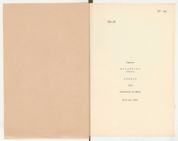 Les documents qui font l'objet de cet inventaire ont été donnés au ministère des Affaires étrangères en 1943, après la mort d'Alexandre Millerand, par le fils de celui-ci Jean.
