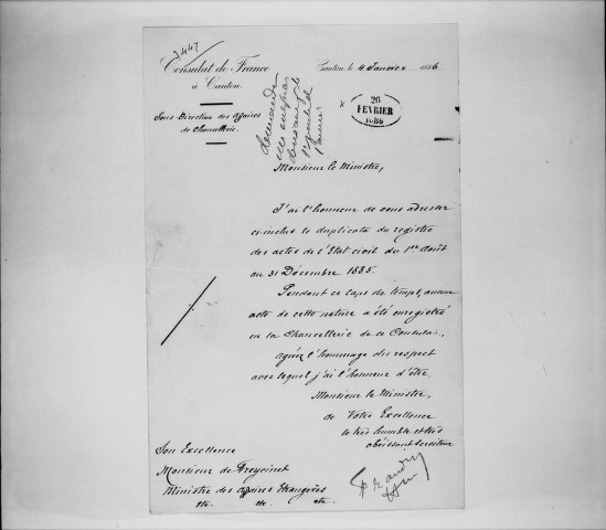 Les actes de plus de 100 ans sont conservés par les Archives diplomatiques avec les autres registres de l'état civil consulaire.