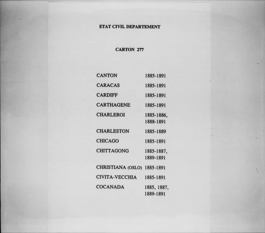 Registres d'état civil consulaire : naissances, mariages, décès. Ces registres consistent souvent en de simples cahiers de quelques feuillets ou des volumes reliés couvrant chacun une année. Cependant, les registres d'état civil de certains postes, en particulier d'Afrique du Nord, ont été reliés avant leur versement aux Archives diplomatiques en volumes regroupant les registres sur plusieurs années. Certains registres ne contiennent aucun acte.