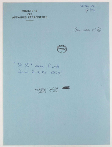 Tous les articles communicables peuvent être reproduits pour usage personnel. Pour les utilisations publiques ou commerciales, il convient de s'enquérir des conditions auprès des Archives diplomatiques.