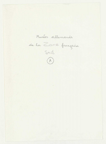 Les fichiers d'œuvres spoliées (série « Fichiers », cotée 209SUP/738-887) ont été établis d'après les déclarations de victimes ou d'après la listes des biens retrouvés en Allemagne et en Autriche.
