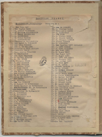 Les 2 443 dossiers nominatifs de réclamation adressés par les victimes à la CRA et à l'OBIP, en vertu des décrets des 13 et 24 novembre 1944 et de l'arrêté du 16 avril 1945, constituent l'origine du fonds (séries CRA et OBIP, cotées 209SUP/1 à 73, et 209SUP/591-705 et 726-737, 209SUP/921-927, 1061-1065, 1100-1145). Ces dossiers se composent de la correspondance entre les victimes et l'administration, des listes et descriptions des biens spoliés, accompagnées parfois de photographies (série « Albums photographiques », cotée 209SUP/933 à 1044), ainsi que des lettres de décharge en cas de restitution des biens.