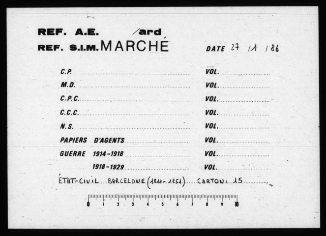 Les registres ayant été versés en volumes reliés de plusieurs années, ne correspondant pas au découpage chronologique ci-dessus, ont été intégrés dans série ad hoc, dite des Volumes par opposition aux sous-séries des Cartons.
