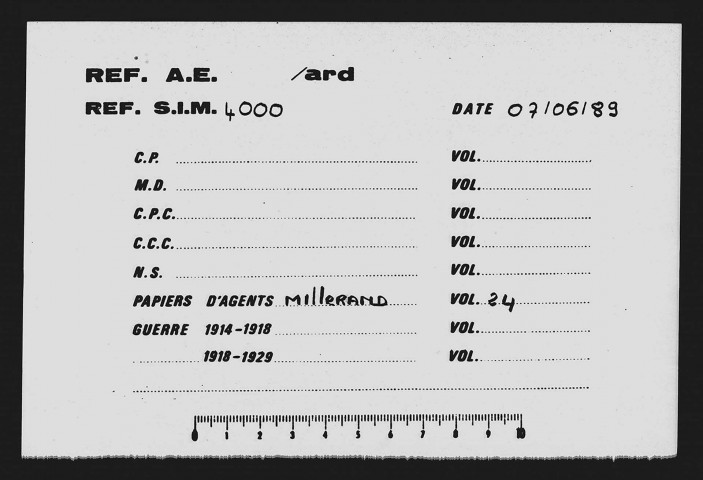 Le reste des papiers laissés par Millerand a été remis à la Bibliothèque Nationale qui les a ensuite cédés aux Archives nationales où ils sont conservés sous la cote 470 AP, voir fiche descriptive du fonds, pp. 725-727.