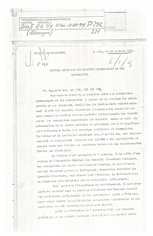 Information sur la situation politique, économique, sociale et militaire de l'Allemagne (février 1919-juin 1920).