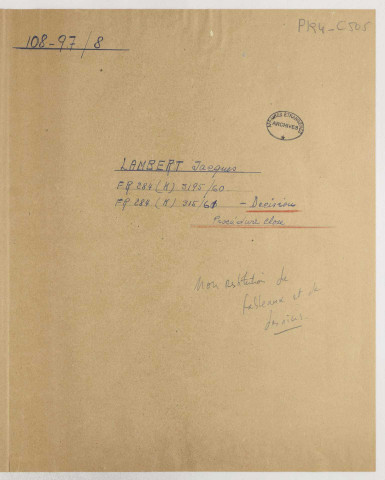 Les 2 443 dossiers nominatifs de réclamation adressés par les victimes à la CRA et à l'OBIP, en vertu des décrets des 13 et 24 novembre 1944 et de l'arrêté du 16 avril 1945, constituent l'origine du fonds (séries CRA et OBIP, cotées 209SUP/1 à 73, et 209SUP/591-705 et 726-737, 209SUP/921-927, 1061-1065, 1100-1145). Ces dossiers se composent de la correspondance entre les victimes et l'administration, des listes et descriptions des biens spoliés, accompagnées parfois de photographies (série « Albums photographiques », cotée 209SUP/933 à 1044), ainsi que des lettres de décharge en cas de restitution des biens.