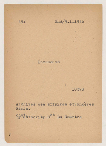 Tous les articles communicables peuvent être reproduits pour usage personnel. Pour les utilisations publiques ou commerciales, il convient de s'enquérir des conditions auprès des Archives diplomatiques.