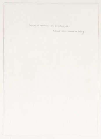 Cession de territoires par l'Allemagne (février 1919-novembre 1920). Rapatriement de prisonniers de guerre (juin 1919). Réparation des dommages de guerre (avril 1919-mars 1920).
