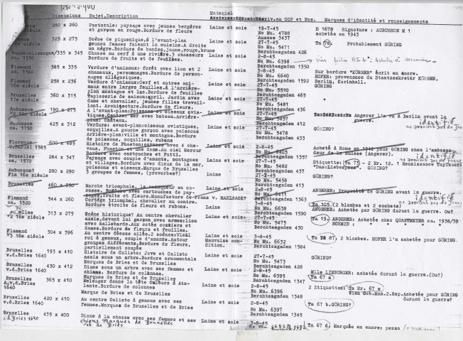 Voir Anne Liskenne, "Le catalogue des peintures et les photographies de la collection : un parcours chaotique et inédit", et Pascal Even, "Le catalogue Goeing : dans les archives dites des spoliations conservées aux Archives diploamtiques", dans Les Archives diplomatiques et J.-M. Dreyfus, Le Catalogue Goering, Paris : Flammarion, 2015, p. 81-93.