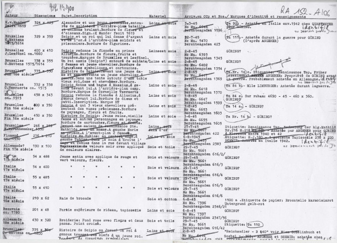 Les fichiers d'œuvres spoliées (série « Fichiers », cotée 209SUP/738-887) ont été établis d'après les déclarations de victimes ou d'après la listes des biens retrouvés en Allemagne et en Autriche.