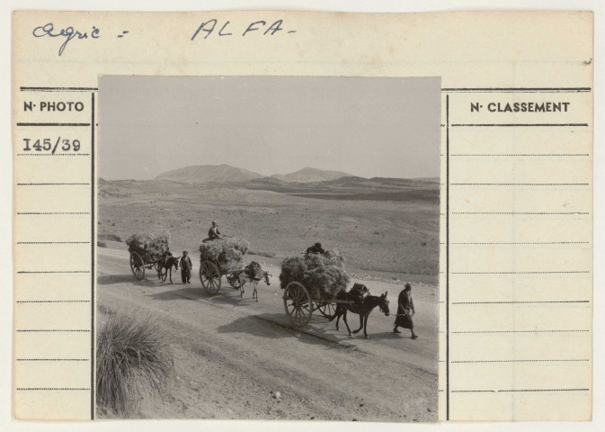 "Récolte de l'alfa, pesage et mise en bottes de l'alfa".Cliché n°1365