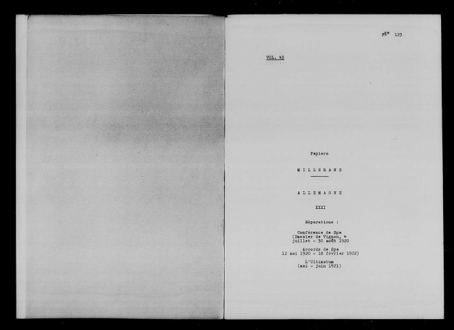 Les documents qui font l'objet de cet inventaire ont été donnés au ministère des Affaires étrangères en 1943, après la mort d'Alexandre Millerand, par le fils de celui-ci Jean.