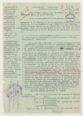 établies par les Allemands, déclarations de propriété des biens enlevés lors de l'occupation allemande, constats de