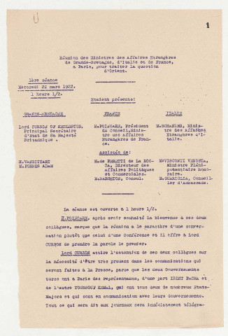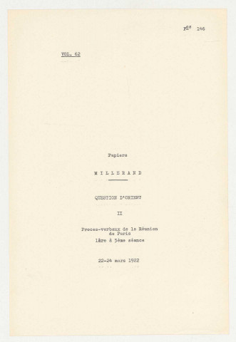 Procès-verbaux de la réunion de Paris (1ère à 5ème séance).