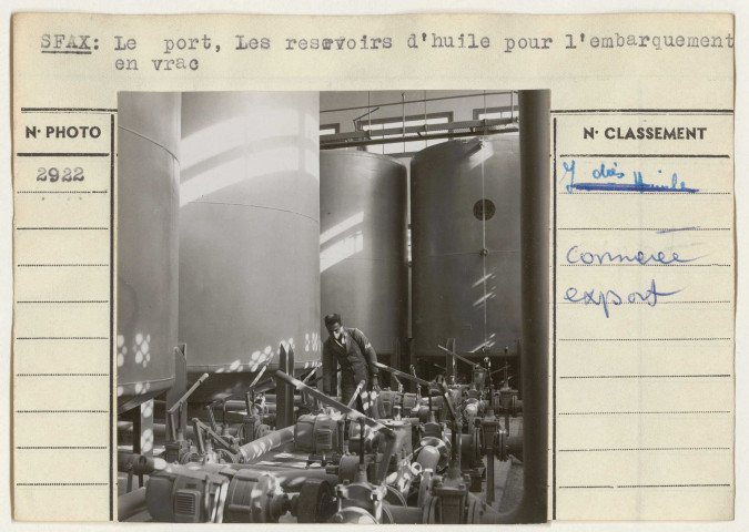 "Sfax : le port, les réservoirs d'huile pour l'embarquement en vrac".Cliché n°2920