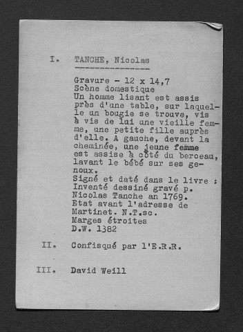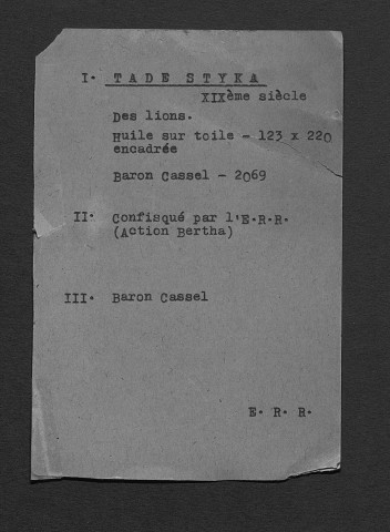 Les fichiers d'œuvres spoliées (série « Fichiers », cotée 209SUP/738-887) ont été établis d'après les déclarations de victimes ou d'après la listes des biens retrouvés en Allemagne et en Autriche.
