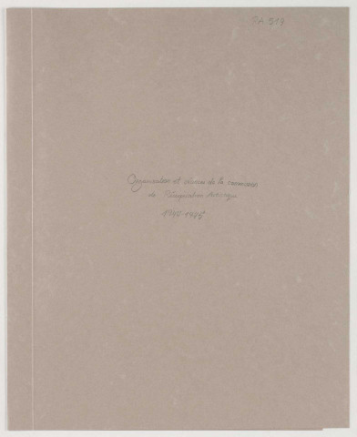 Ces archives se composent de 1 093 cartons (cotés 209SUP/1 à 1148 et 20160007AC/1 à 67) provenant des différents services chargés des opérations de récupération artistique et de restitution depuis la France ou la zone française d'occupation en Allemagne et en Autriche : Commission de récupération artistique (CRA), Office des biens et intérêts privés (OBIP), Service de remise en place des œuvres d'art (SRPOA), Bureau central des restitutions (BCR), Bureau d'investigation artistique (BIA).