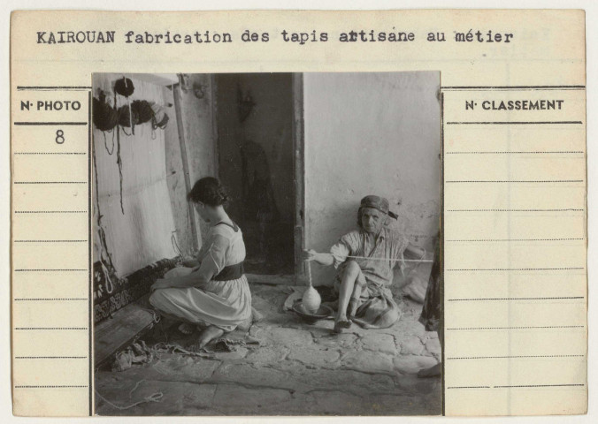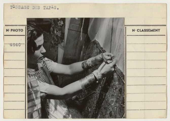 "Kairouan : fabrication des tapis, artisane au métier". Cliché n°8