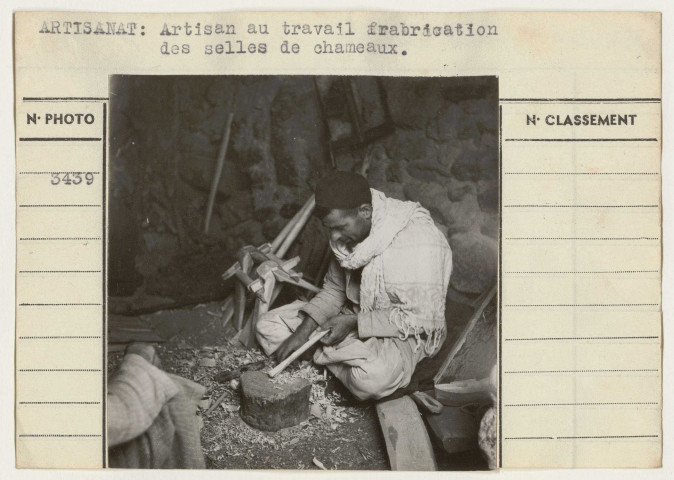 "Artisan au travail : fabrication des selles de chameaux". Cliché n°3439