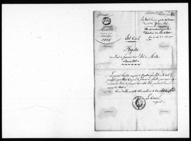 • Le premier, le registre primata, est conservé pendant 100 ans après clôture par le poste avant d'être versé aux Archives diplomatiques. La collection des registres primata est déposée au Centre des Archives diplomatiques de Nantes.