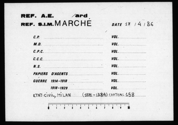 Les registres ayant été versés en volumes reliés de plusieurs années, ne correspondant pas au découpage chronologique ci-dessus, ont été intégrés dans série ad hoc, dite des Volumes par opposition aux sous-séries des Cartons.