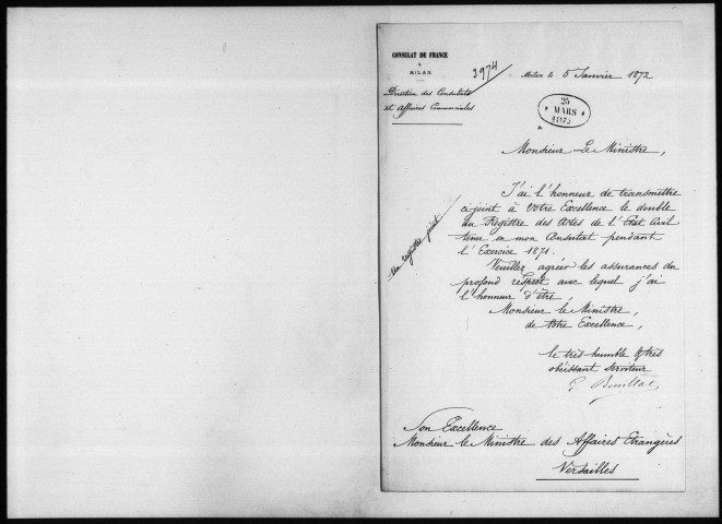 Les actes de plus de 100 ans sont conservés par les Archives diplomatiques avec les autres registres de l'état civil consulaire.