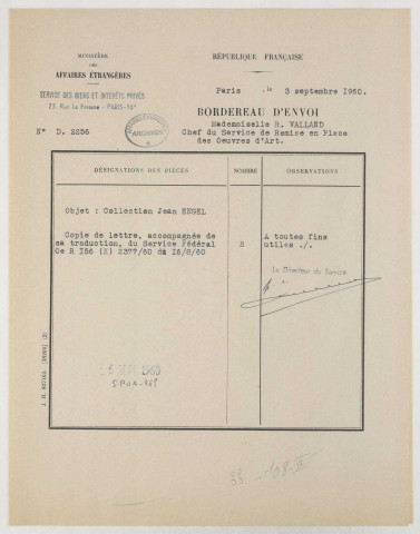 Il permet également de retracer l'histoire de collections juives dispersées ou perdues, de reconstituer parfois le catalogue des productions d'un artiste. Il est enfin le reflet de l'activité de l'administration française en France, en Allemagne et en Autriche dans le domaine spécifique des restitutions de biens culturels.