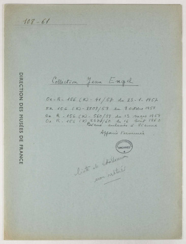 Les fichiers d'œuvres spoliées (série « Fichiers », cotée 209SUP/738-887) ont été établis d'après les déclarations de victimes ou d'après la listes des biens retrouvés en Allemagne et en Autriche.