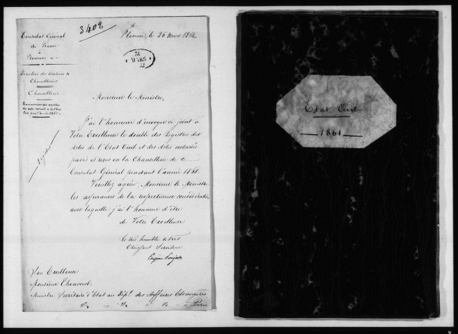 Registres d'état civil consulaire : naissances, mariages, décès. Ces registres consistent souvent en de simples cahiers de quelques feuillets ou des volumes reliés couvrant chacun une année. Cependant, les registres d'état civil de certains postes, en particulier d'Afrique du Nord, ont été reliés avant leur versement aux Archives diplomatiques en volumes regroupant les registres sur plusieurs années. Certains registres ne contiennent aucun acte.