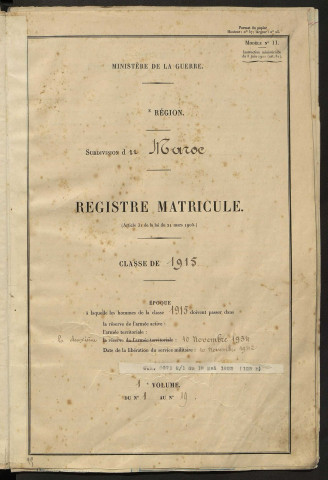Le matricule militaire synthétise les états signalétiques et des services militaires d'un individu. Les matricules sont rassemblés dans des volumes reliés par classes d'âge (il peut y avoir plusieurs registres pour une même classe). Chaque registre comporte environ 250 fiches matricules, classées par ordre de numéro de matricule.