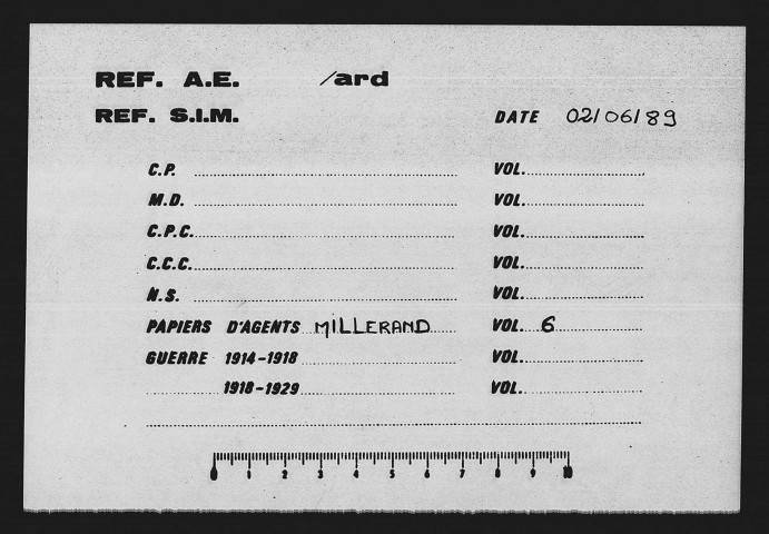 Le reste des papiers laissés par Millerand a été remis à la Bibliothèque Nationale qui les a ensuite cédés aux Archives nationales où ils sont conservés sous la cote 470 AP, voir fiche descriptive du fonds, pp. 725-727.