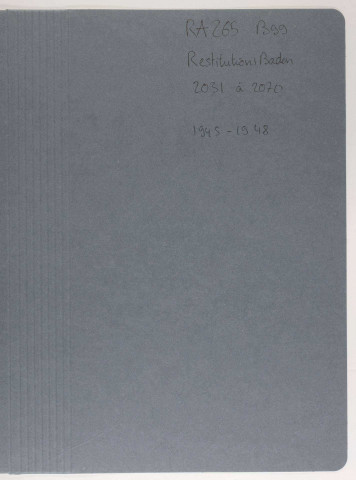 dossiers réalisés par le Service de remise en place des œuvres d'art en 1951.