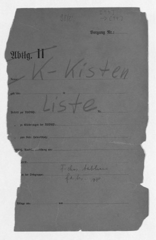 Inventaire et liste de caisses « K-Kisten Liste de K 1 à K 201 »