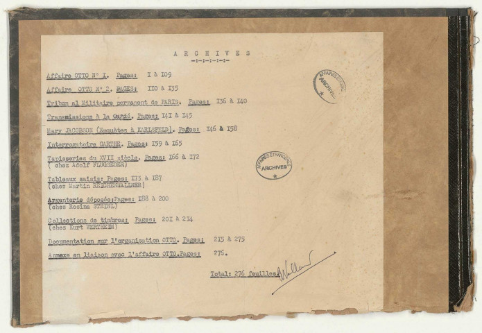 Ce fonds constitue la principale source française d'informations sur les spoliations de biens culturels commises contre les victimes juives (Alliance israélite universelle, consistoires, particuliers) et les victimes non juives (musées, bibliothèques, particuliers) pendant la Seconde Guerre mondiale. Il donne des éléments d'information sur les biens signalés spoliés par les victimes ou rapatriés par les services chargés de la récupération artistique. Il peut donner des informations sur l'itinéraire du bien, sa spoliation, sa récupération éventuelle et son rapatriement.