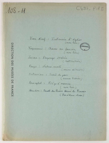 Les fichiers d'œuvres spoliées (série « Fichiers », cotée 209SUP/738-887) ont été établis d'après les déclarations de victimes ou d'après la listes des biens retrouvés en Allemagne et en Autriche.