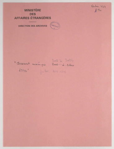 Tous les articles communicables peuvent être reproduits pour usage personnel. Pour les utilisations publiques ou commerciales, il convient de s'enquérir des conditions auprès des Archives diplomatiques.