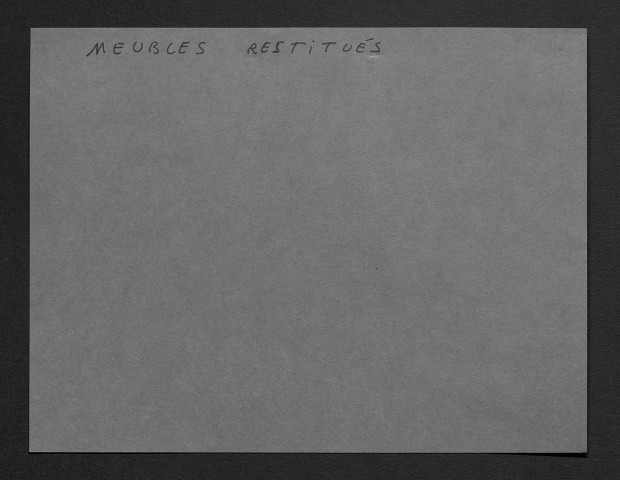 Pour les fiches peintures et dessins (cartons 738 à 760 et 805bis à 809), voir la liste Excel. Les informations relatives aux restitutions ou aux non restitutions doivent pêtre prises avec précaution et confirmées par les décharges de restitutions (série CRA ou série 13BIP).