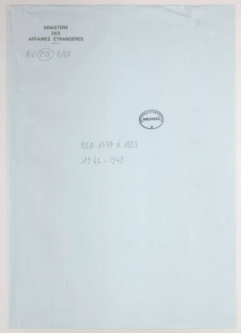 Tous les articles communicables peuvent être reproduits pour usage personnel. Pour les utilisations publiques ou commerciales, il convient de s'enquérir des conditions auprès des Archives diplomatiques.