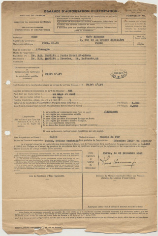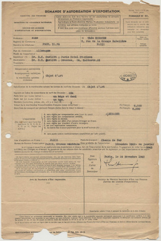 Demandes d'autorisation d'exportation vers l'Allemagne, adressées à la Direction des Musées Nationaux (Michel Martin, chargé de mission)