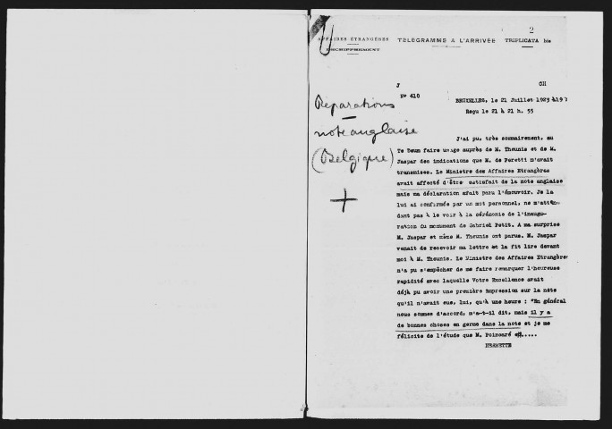 Les documents qui font l'objet de cet inventaire ont été donnés au ministère des Affaires étrangères en 1943, après la mort d'Alexandre Millerand, par le fils de celui-ci Jean.