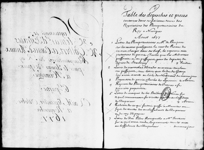 D'Estrades, Croissy, le comte d'Avaux, plénipotentiaires à Nimègue ; des Carrières.