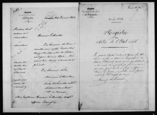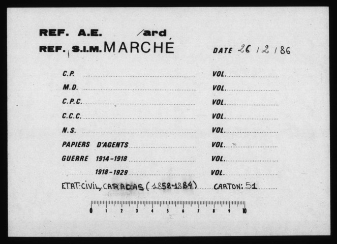 • Le premier, le registre primata, est conservé pendant 100 ans après clôture par le poste avant d'être versé aux Archives diplomatiques. La collection des registres primata est déposée au Centre des Archives diplomatiques de Nantes.