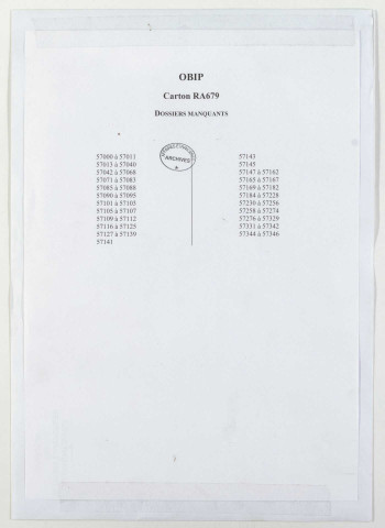 Les 2 443 dossiers nominatifs de réclamation adressés par les victimes à la CRA et à l'OBIP, en vertu des décrets des 13 et 24 novembre 1944 et de l'arrêté du 16 avril 1945, constituent l'origine du fonds (séries CRA et OBIP, cotées 209SUP/1 à 73, et 209SUP/591-705 et 726-737, 209SUP/921-927, 1061-1065, 1100-1145). Ces dossiers se composent de la correspondance entre les victimes et l'administration, des listes et descriptions des biens spoliés, accompagnées parfois de photographies (série « Albums photographiques », cotée 209SUP/933 à 1044), ainsi que des lettres de décharge en cas de restitution des biens.