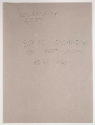 Les fichiers d'œuvres spoliées (série « Fichiers », cotée 209SUP/738-887) ont été établis d'après les déclarations de victimes ou d'après la listes des biens retrouvés en Allemagne et en Autriche.