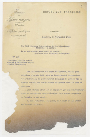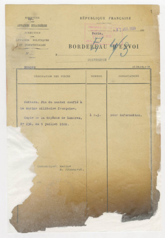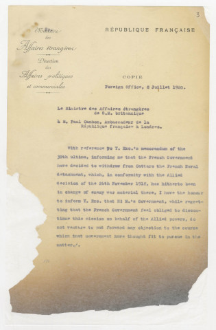 Tous les articles communicables peuvent être reproduits pour usage personnel. Pour les utilisations publiques ou commerciales, il convient de s'enquérir des conditions auprès des Archives diplomatiques.