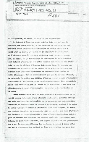 Nicaragua (E.47/4), insertion d'une clause dans le Traité de Versailles vis-à-vis des exigences de l'Allemagne (juin 1919) [Fo.3-6].
