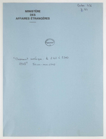 Tous les articles communicables peuvent être reproduits pour usage personnel. Pour les utilisations publiques ou commerciales, il convient de s'enquérir des conditions auprès des Archives diplomatiques.