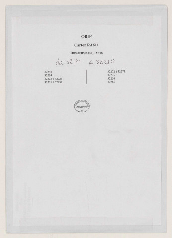Les 2 443 dossiers nominatifs de réclamation adressés par les victimes à la CRA et à l'OBIP, en vertu des décrets des 13 et 24 novembre 1944 et de l'arrêté du 16 avril 1945, constituent l'origine du fonds (séries CRA et OBIP, cotées 209SUP/1 à 73, et 209SUP/591-705 et 726-737, 209SUP/921-927, 1061-1065, 1100-1145). Ces dossiers se composent de la correspondance entre les victimes et l'administration, des listes et descriptions des biens spoliés, accompagnées parfois de photographies (série « Albums photographiques », cotée 209SUP/933 à 1044), ainsi que des lettres de décharge en cas de restitution des biens.