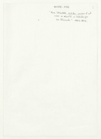 Rose Valland fut le principal témoin des spoliations nazies, en tant qu'attachée au musée de Jeu de Paume, alors qu'il était utilisé, entre octobre 1940 et août 1944, comme lieu de stockage et de triage des œuvres spoliées. Elle rendait compte à la direction des musées de France des mouvements d'œuvres qu'elle voyait transiter avant d'être transférées en Allemagne ou d'être écoulées sur le marché français. Elle permit aux troupes alliées de localiser les dépôts d'œuvres sur le territoire du Reich. Pour sa connaissance des agissements des nazis, elle fut nommée auprès de la CRA à Paris, puis en mai 1945, elle fut envoyée en Allemagne avec le grade de capitaine dans la 1re armée française. Elle fut placée à la tête du service de remise en place des œuvres d'art (SRPOA), chef de la section Beaux-Arts du groupe français du Conseil de contrôle allié, à Berlin. Deux ans après son retour en France, elle fut nommé à la tête du servie de protection des œuvre d'art, chargée d'anticiper le sauvetage des œuvres en cas de 3e conflit mondial. Dans le même temps, on continua à la solliciter sur des affaires de spoliations, bien au-delà de sa mise à la retraite en 1968. Elle conserva les archives de la récupération artistique, en y mêlant ses propres archives. Ce qui a parfois conduit à appeler improprement ce fonds « archives Rose Valland ».
